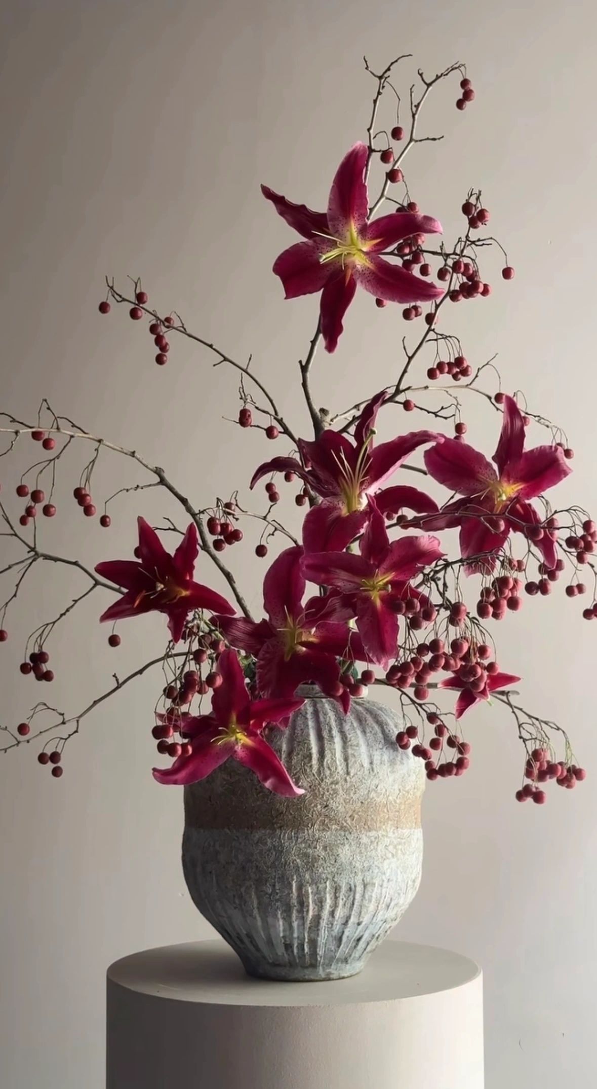 Introducing our signature Fall statement piece: a tall, architectural arrangement inspired by the rustic elegance of the season. Designed to fill the space with warmth and sophistication, featuring a textural mix of preserved botanicals, seasonal blooms, lasting branches, insuring a dramatic visual impact that lasts